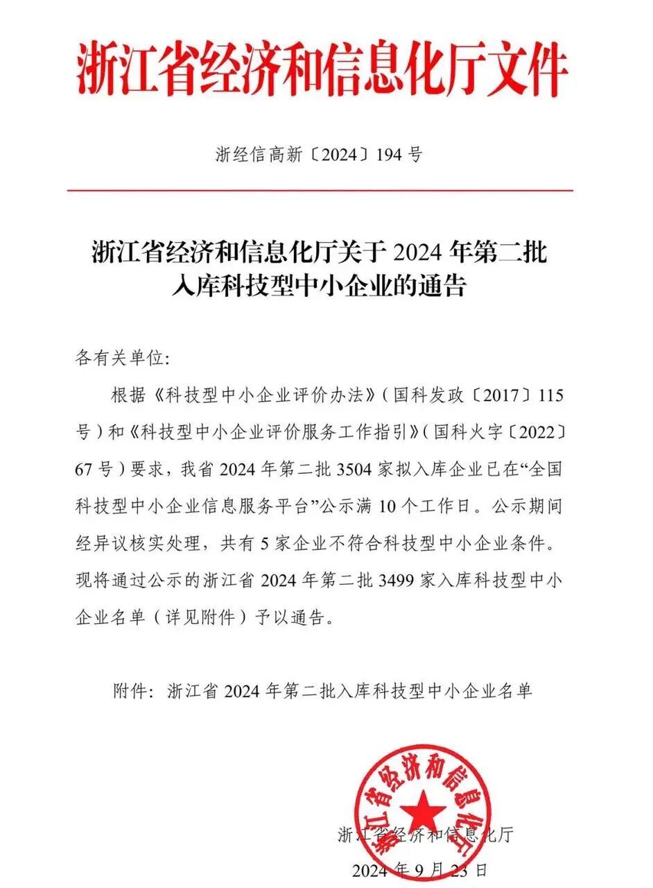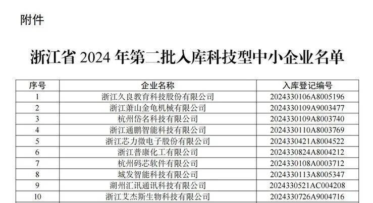 浙江省2024年第2批入库科技型中小企业名单节选